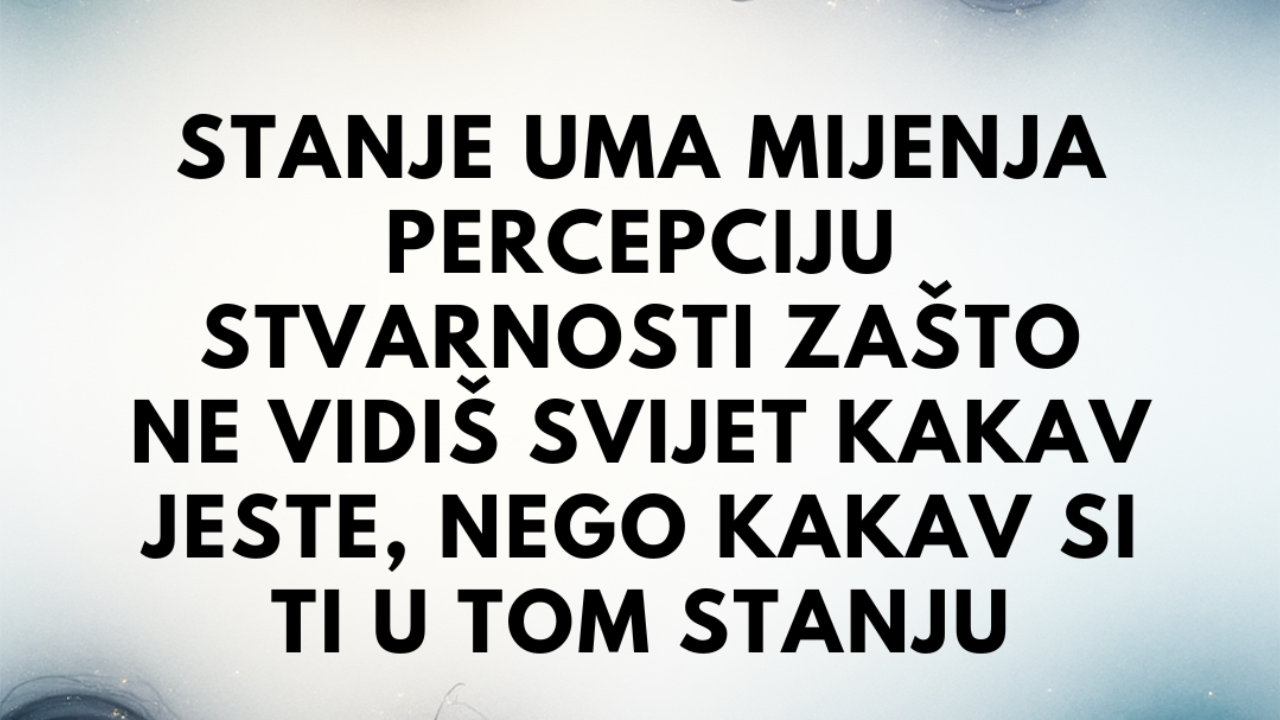 Međutim, iz perspektive neuroznanosti i psihologije percepcije, ono što doživljavamo kao “stvarnost” uvijek je filtrirano kroz stanje nervnog sistema.